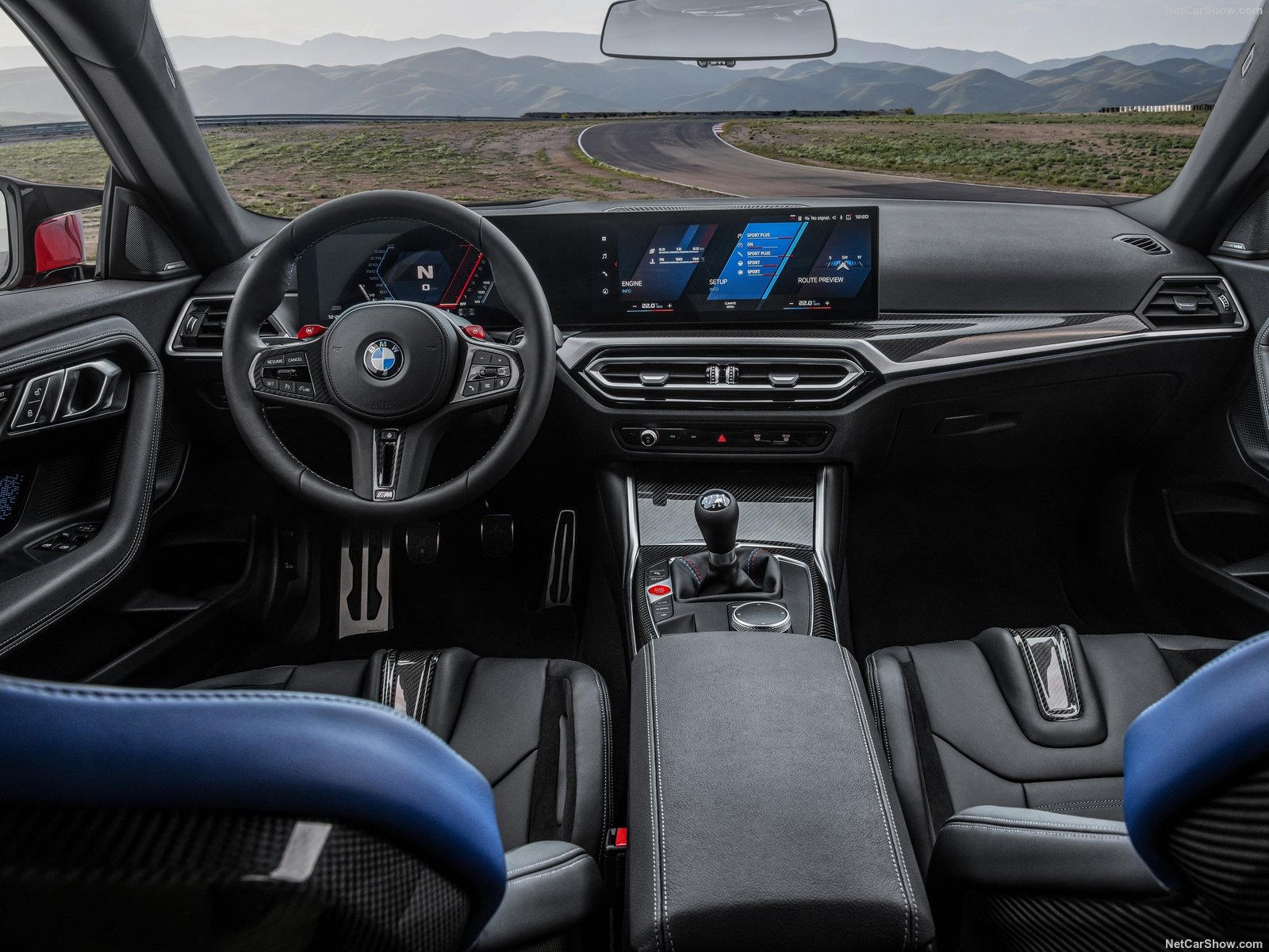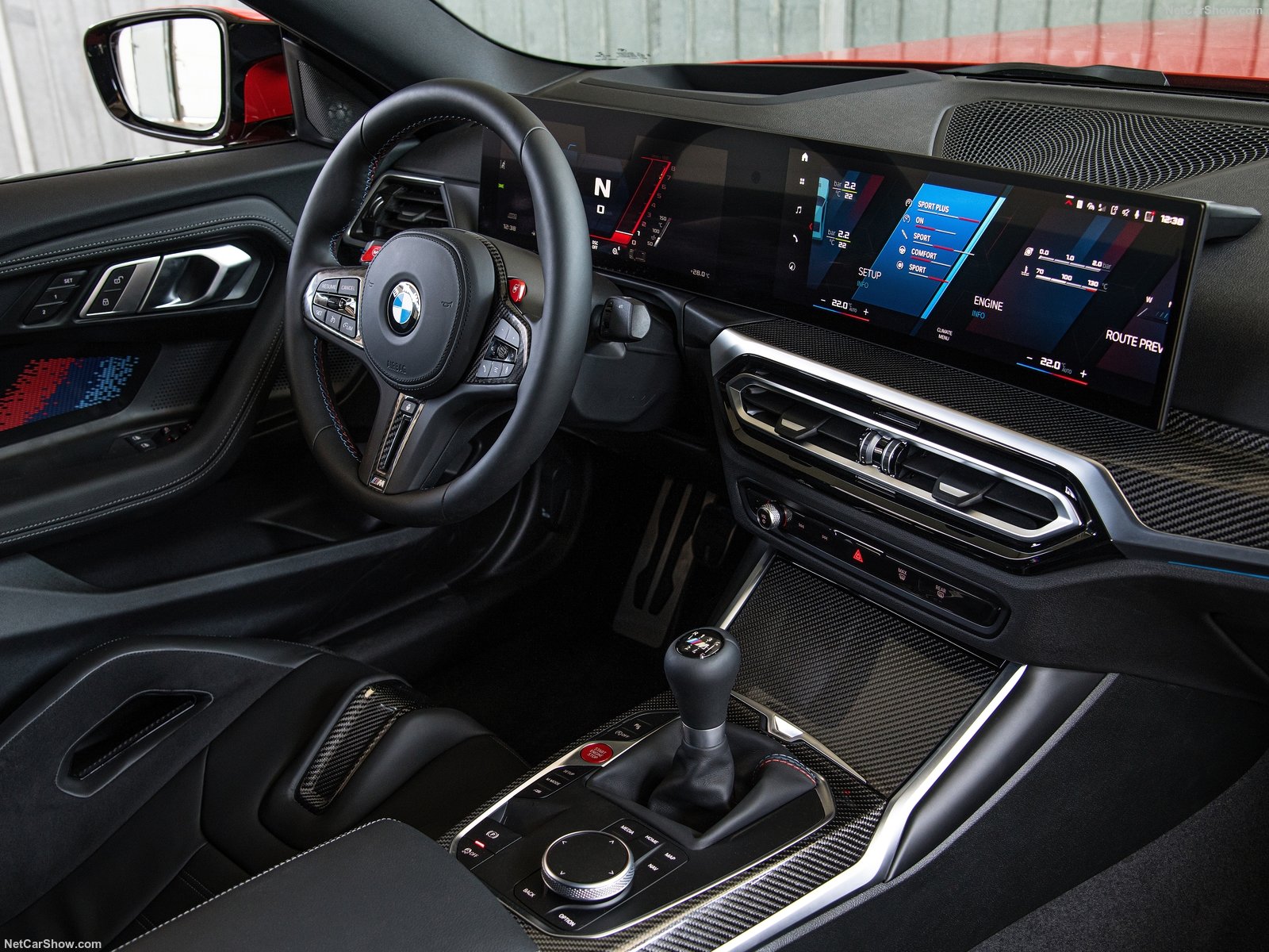 새로운 M2 콕핏의 표준 BMW 커브드 디스플레이는 운전자를 향해 선명하게 각도가 조정되어 인체공학적 효과가 뛰어나 직관적인 터치 컨트롤이 더욱 간단합니다. 그것은 12.3인치 정보 디스플레이와 14.9인치의 화면 대각선을 가진 제어 디스플레이로 구성됩니다.