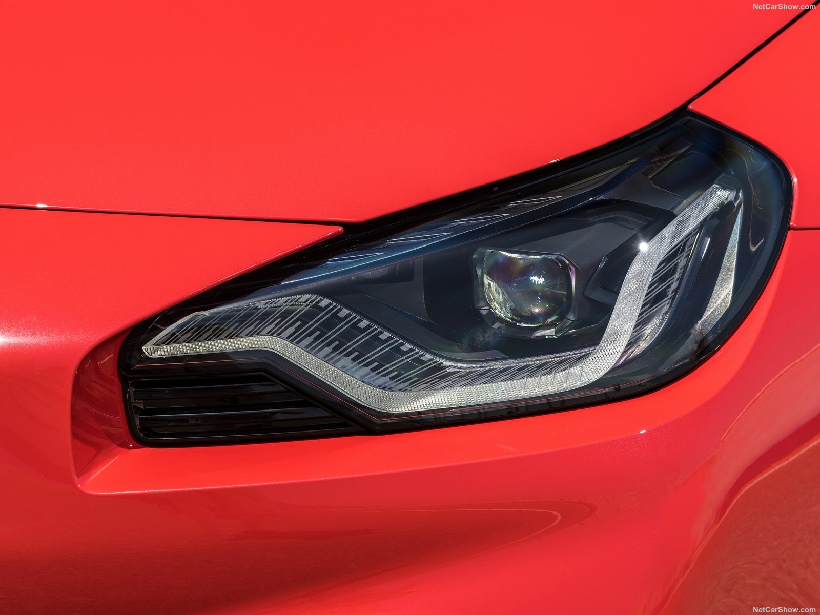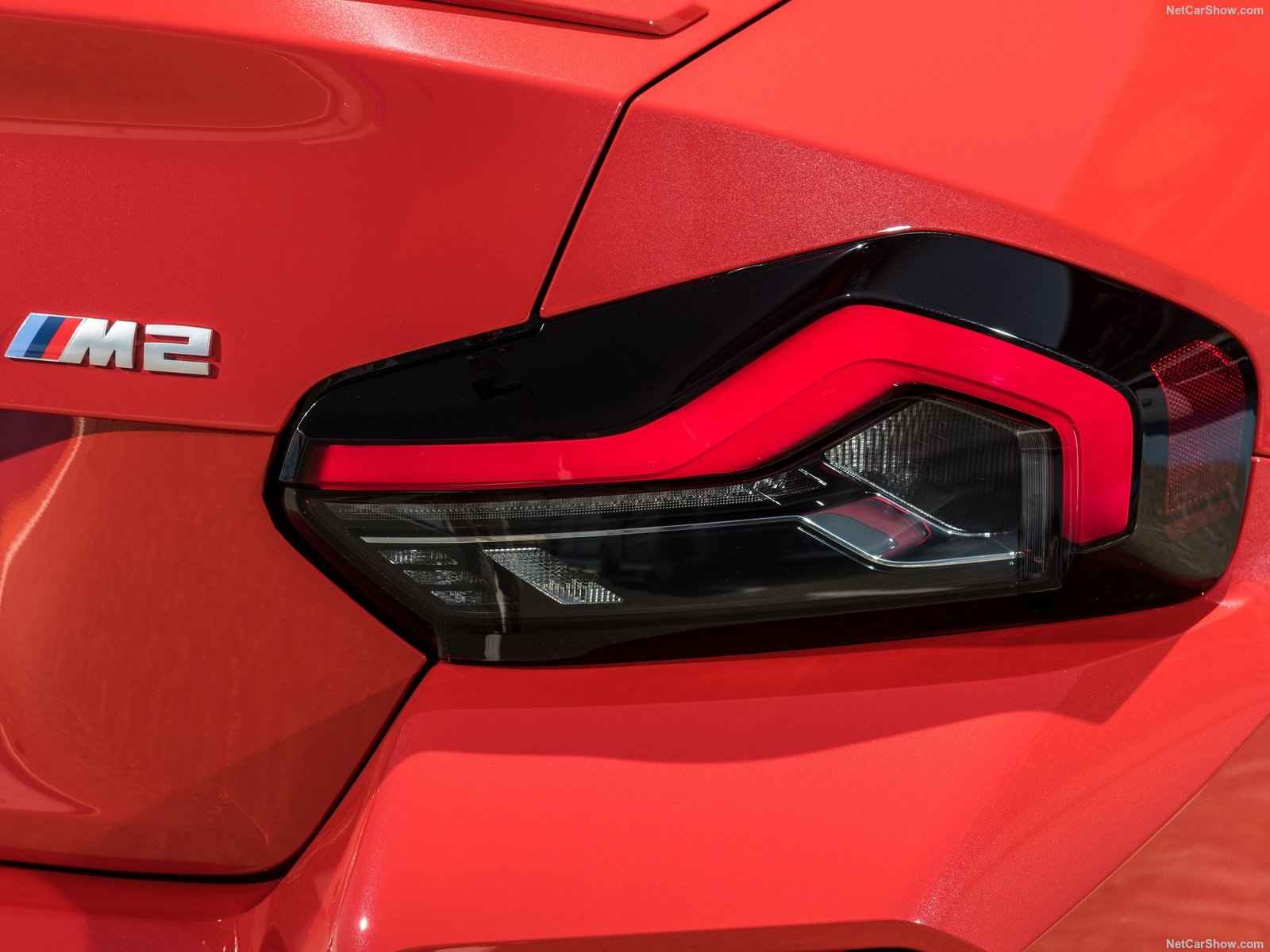 신형 BMW M2의 프론트 엔드에는 크고 수평이며 프레임이 없는 BMW 키드니 그릴이 헤드라인을 장식하고 있습니다. M-일반적인 3개 섹션 하부 흡기 요소는 거의 직사각형 윤곽을 가지며 파워트레인 구성 요소와 브레이크의 냉각을 최적화합니다. 대담하게 윤곽이 잡힌 헤드램프 유닛은 프론트 엔드 외측 가장자리에 위치합니다. 전설적인 BMW 02 모델에서 영감을 받아 로우 빔과 하이 빔 모두에 풀 LED 기술을 사용한 단일 원형 헤드라이트를 장착했습니다. 조명의 어두운 배경은 직장에서 발전된 기술을 명확하게 보여줍니다. 주간 주행등은 전조등 하단 가장자리에서 U자형 도광판 형태를 취하며, 방향 지시등도 통합되어 있습니다. 옵션으로 BMW 셀렉티브 빔의 눈부시지 않은 하이 빔 어시스턴트가 장착된 어댑티브 LED 헤드라이트와 어두운 인레이가 있는 M 라이트 섀도우 라인이 있습니다.